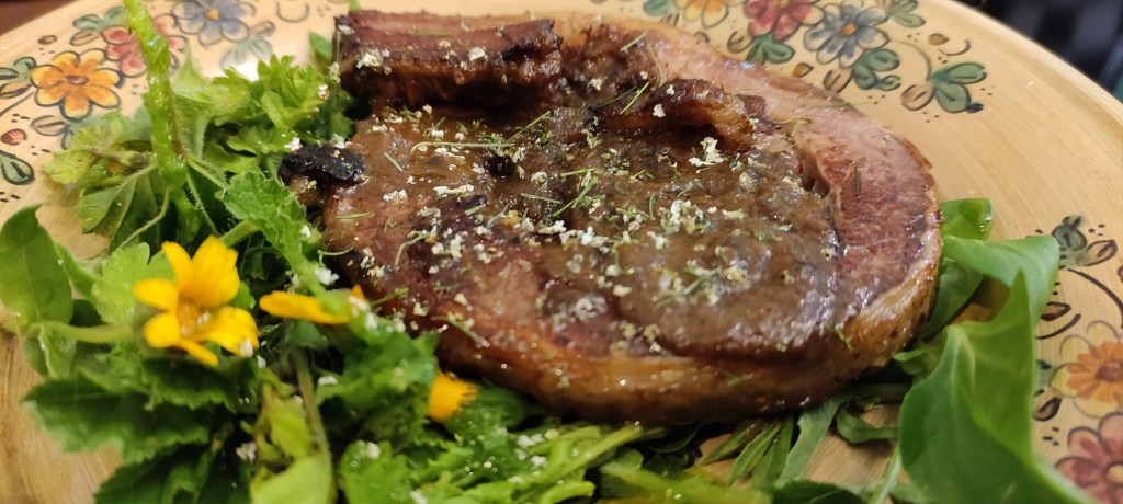 Le carni sono di allevamenti vicini, così vicini che si conosce bene non solo il produttore ma pure l’animale diventato cibo. È una catena in cui ogni anello viene rispettato il più possibile.