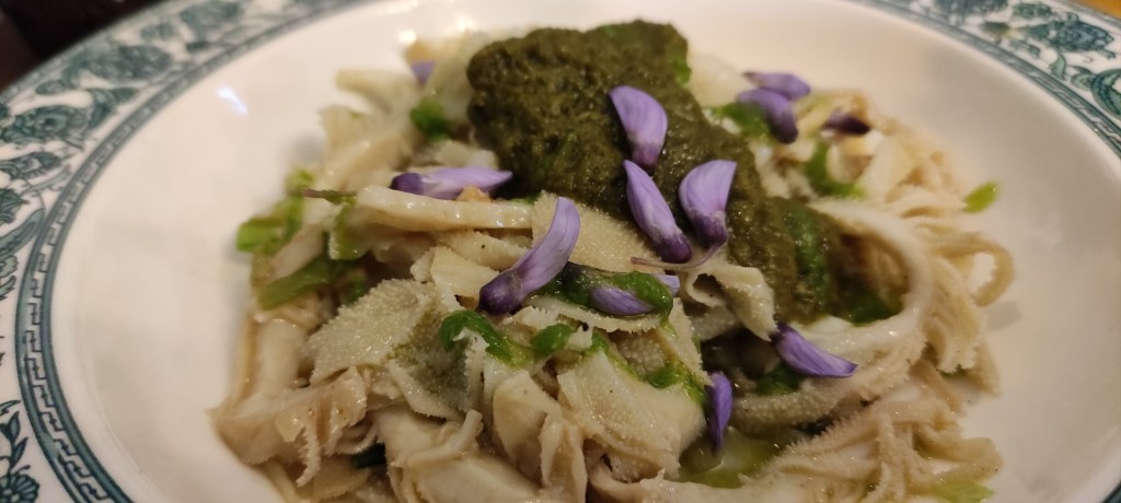 Direi che i piatti in dettaglio non ve li raccontiamo. Il menù è corto e variabile, la filosofia e gli intenti che stanno alla base di questo posto prima ancora delle fondamenta del suo palazzo sono cura per una materia prima cercata con determinazione ma non obbligata dalla ricetta ad essere questo o quello. Le erbacce nel nome sono… erbe, spontanee, selvatiche, dall’orto, trovate da un produttore vicino, scoperte da poco, trasformate attraverso il loro utilizzo per farne ripieni, contorni, abbinamenti, salse e quant’altro la loro sostanza inviti a creare.