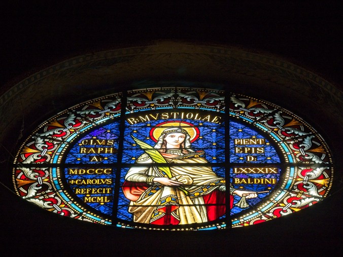 La partenza di Sabato da Roma in orario decoroso ci ha consentito di arrivare con un certo anticipo verso Chiusi, per cui… che fai, non esci a Chiusi? Ed eccoci in questo paese che, come altri che visiteremo nei giorni successivi, quest’anno ha un numero di turisti bassino. È sabato, metà mattina, bel tempo, un po’ caldo ma ad un livello sostenibile, eppure noi forestieri a passeggio saremo sì e no una ventina.