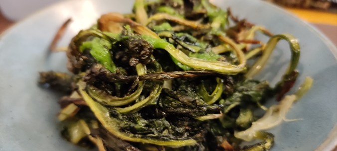 Direi che i piatti in dettaglio non ve li raccontiamo. Il menù è corto e variabile, la filosofia e gli intenti che stanno alla base di questo posto prima ancora delle fondamenta del suo palazzo sono cura per una materia prima cercata con determinazione ma non obbligata dalla ricetta ad essere questo o quello. Le erbacce nel nome sono… erbe, spontanee, selvatiche, dall’orto, trovate da un produttore vicino, scoperte da poco, trasformate attraverso il loro utilizzo per farne ripieni, contorni, abbinamenti, salse e quant’altro la loro sostanza inviti a creare.